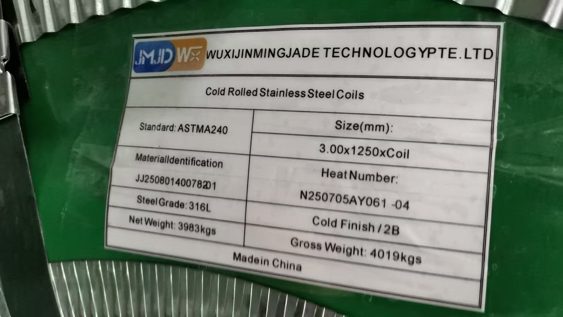 محموله 26 تنی از کویل های استنلس استیل متعلق به بازرگانی در تهران ، در انبار شرکت JMJDWX در شهر ووشی درحال آماده سازی و بارگیری جهت ارسال به بندر عباس می باشد.