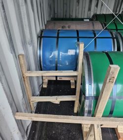 بسته بندی کویل ها و پالت های صادراتی ما مطابق با پکیج های استانداردهای بین المللی و دارای تمهیداتی مانند تسمه و روکش و فیکساتور های داخل کانتینر هستند که باعث می شوند در جابجایی کمترین آسیب به بار وارد شود.