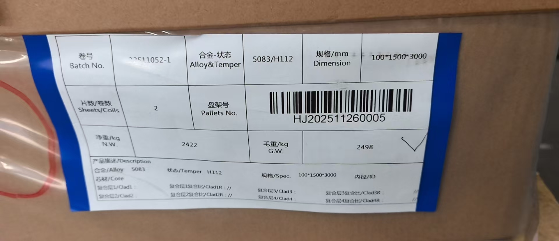 محموله  36 تن ورق آلومینیوم گرید 5083 متعلق به بازرگانی در تهران ، در انبار شرکت JMJDWX در شهر ووشی درحال آماده سازی و بارگیری جهت ارسال به بندر عباس می باشد.