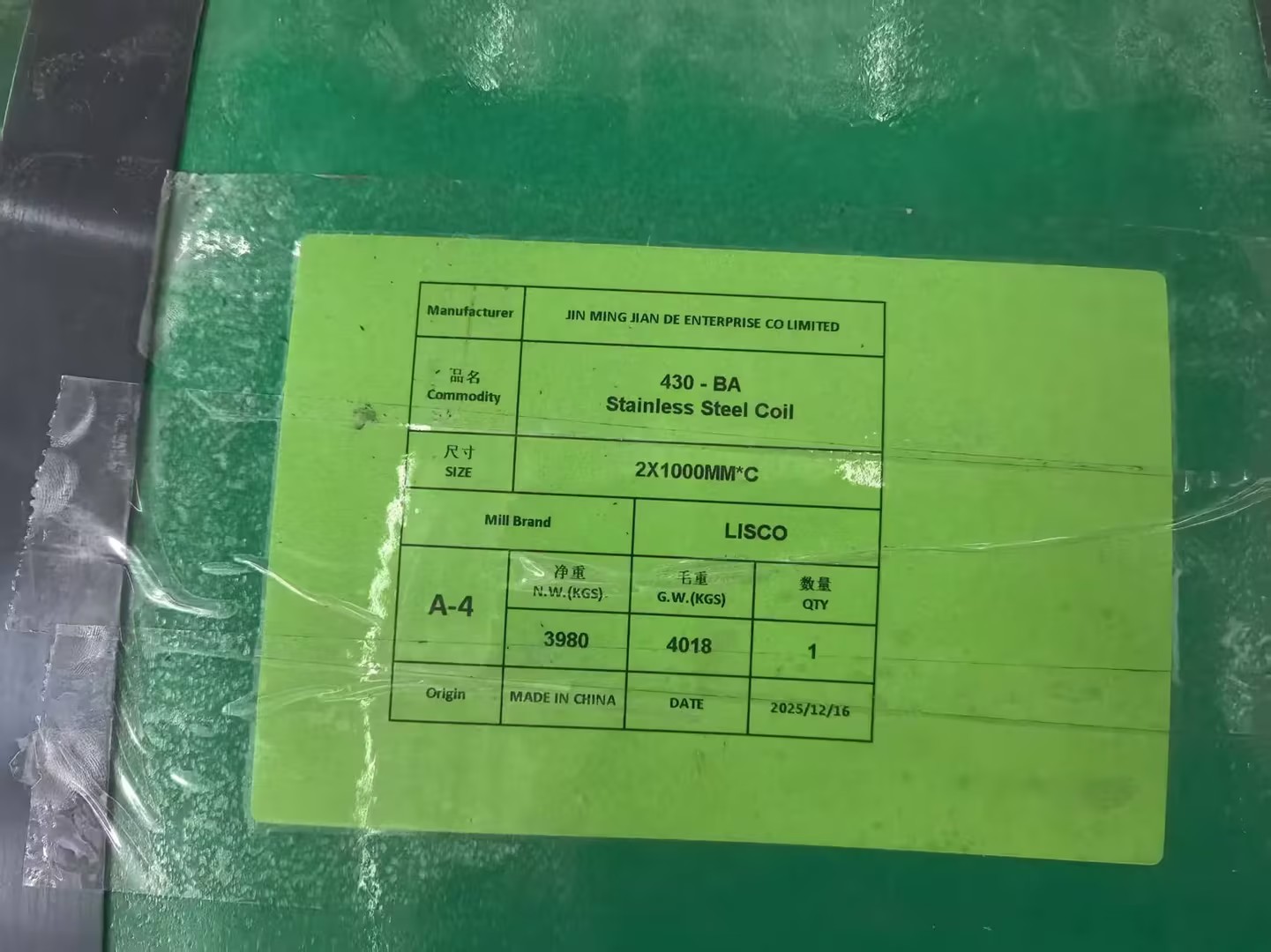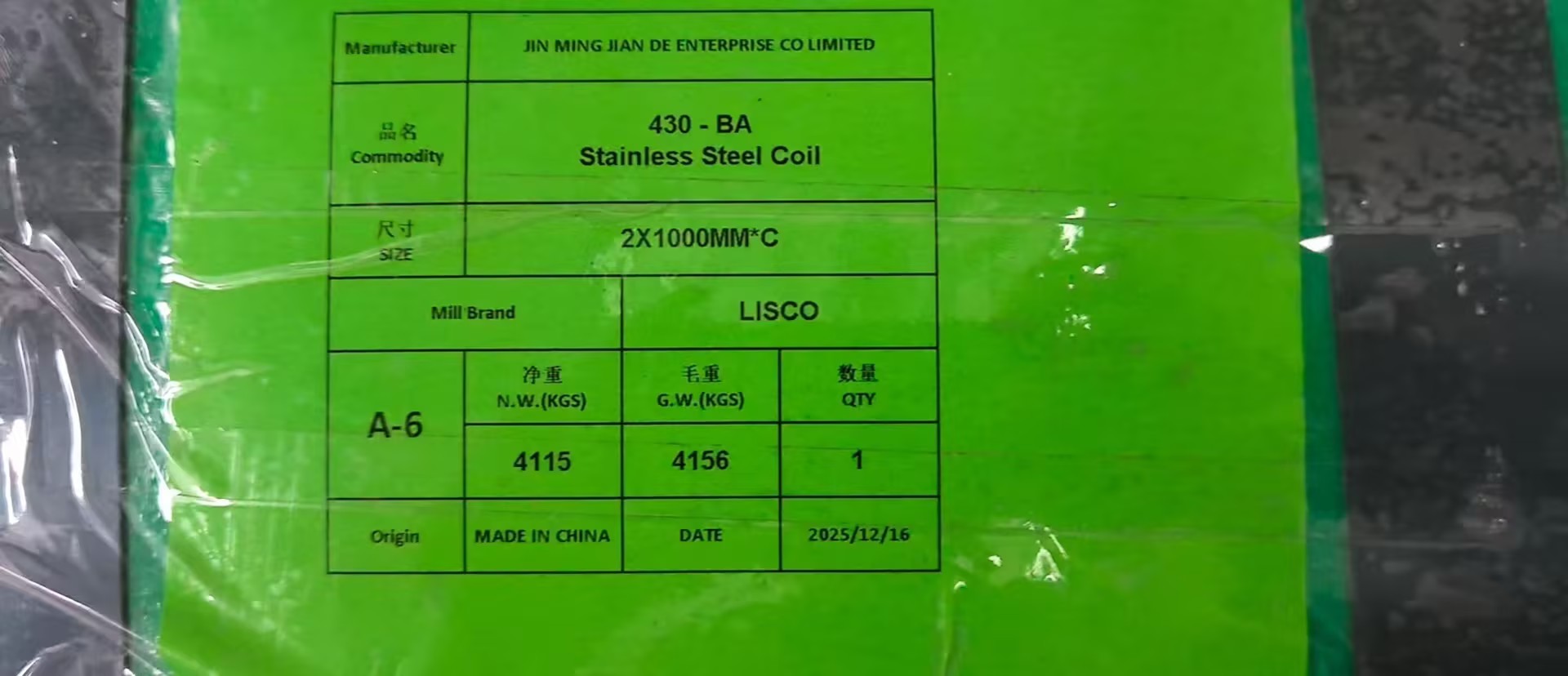 محموله 25 تن کویل استنلس استیل متعلق به بازرگانی در تهران ، در انبار شرکت JMJDWX در شهر ووشی درحال آماده سازی و بارگیری جهت ارسال به بندر عباس می باشد.